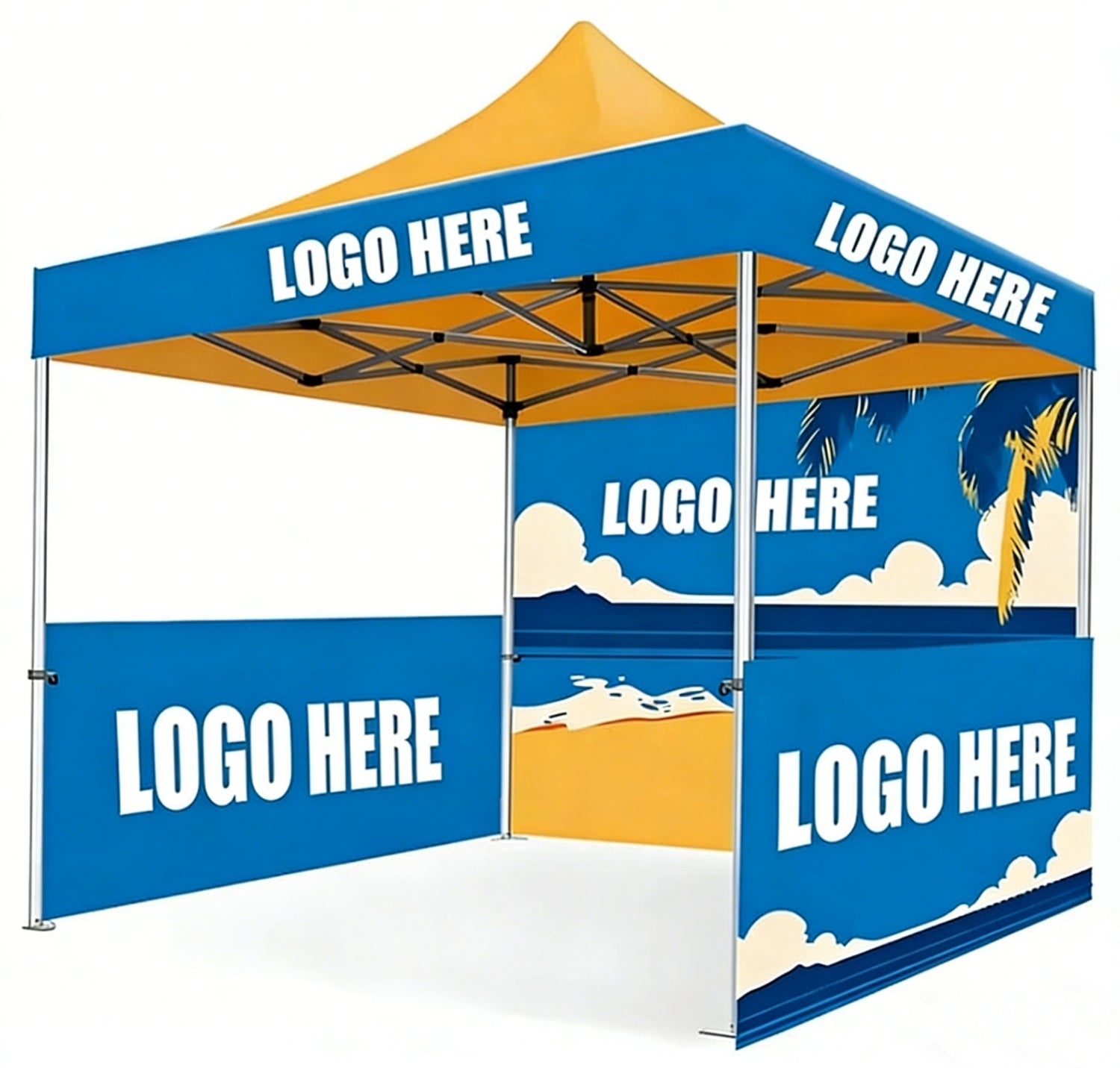 Boost your brand exposure with our Custom Canopy Tents. These tents are designed to endure outdoor conditions, making them ideal for trade shows, festivals, and other outdoor events. With full-color dye sublimation printing, your custom designs are displayed with vibrant hues and crisp details. Personalize your tent with your logo, slogan, or any graphic to enhance your brand presence at any event.
